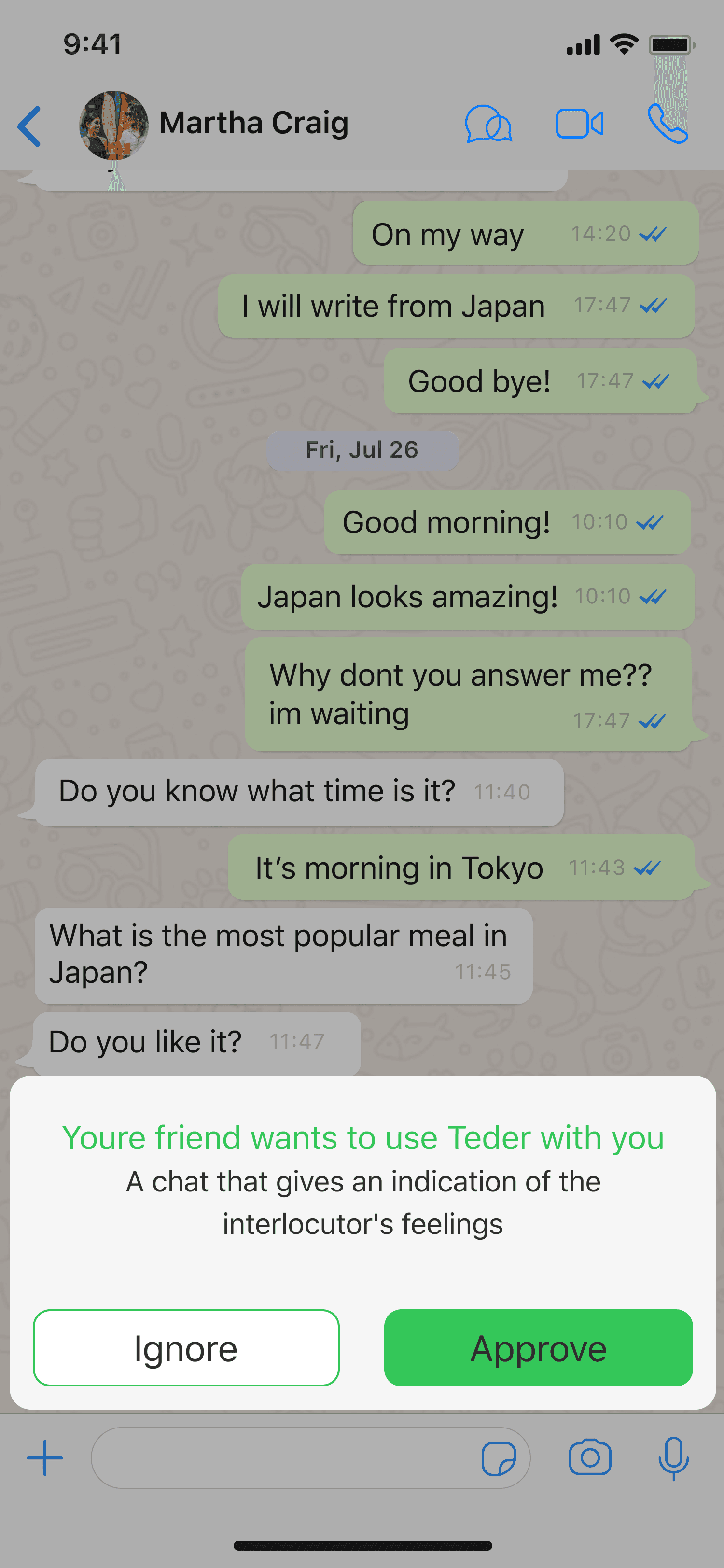 Teder. This project, created during my studies, focuses on a function for WhatsApp where users can set the emotional tone of their messages. The feature adjusts the text to make messages more pleasant, friendly, or empathetic based on the chosen emotion.